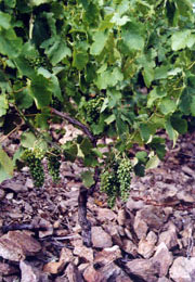 Greffe de Petite Serine (sélection massale) sur Syrah (clone 99) avec première récolte visible. Fin juin 2000 (an n+1) à Ampuis (Rhône). |